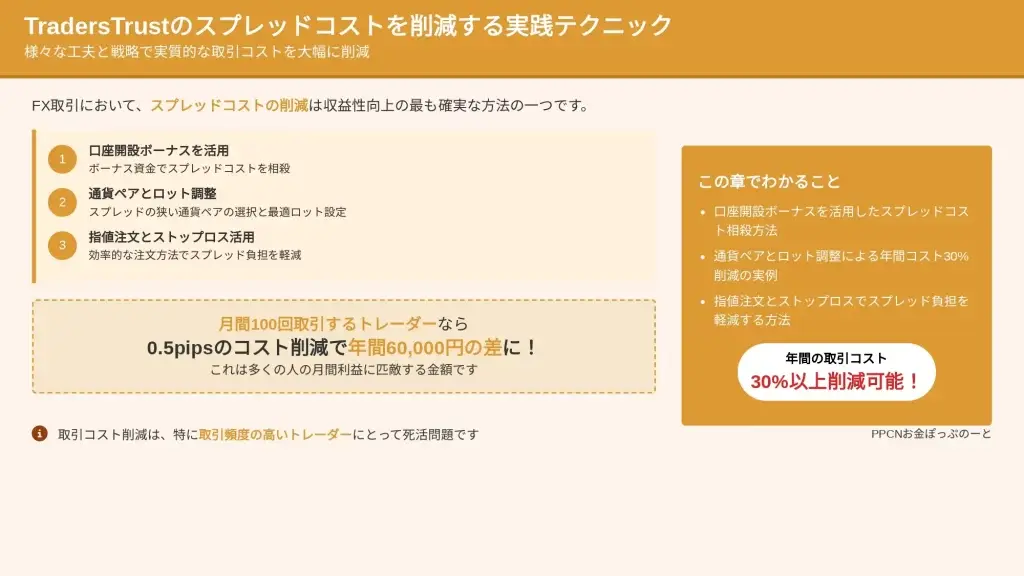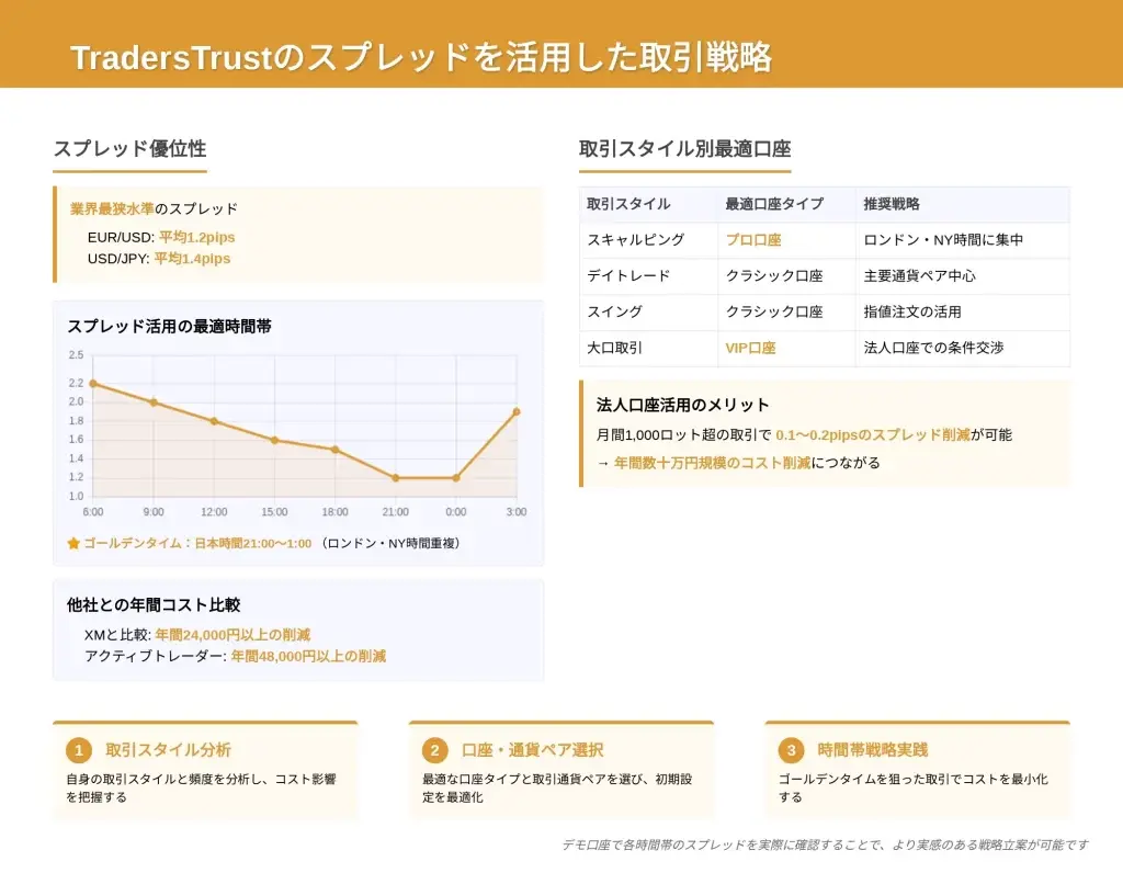TradersTrustの競争力のあるスプレッドを最大限活用し、取引コストを削減しながら収益性を高める具体的な戦略をご提案します