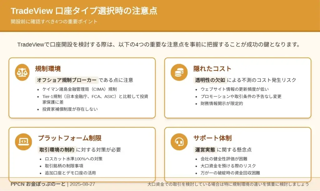 TradeViewで口座を開設する前に認識しておくべき重要な注意点がいくつか存在します。