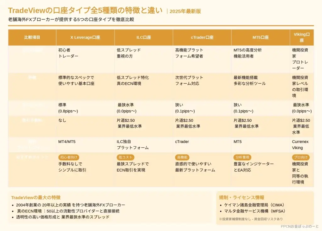 TradeViewの口座タイプ全5種類の特徴と違い|2025年最新版