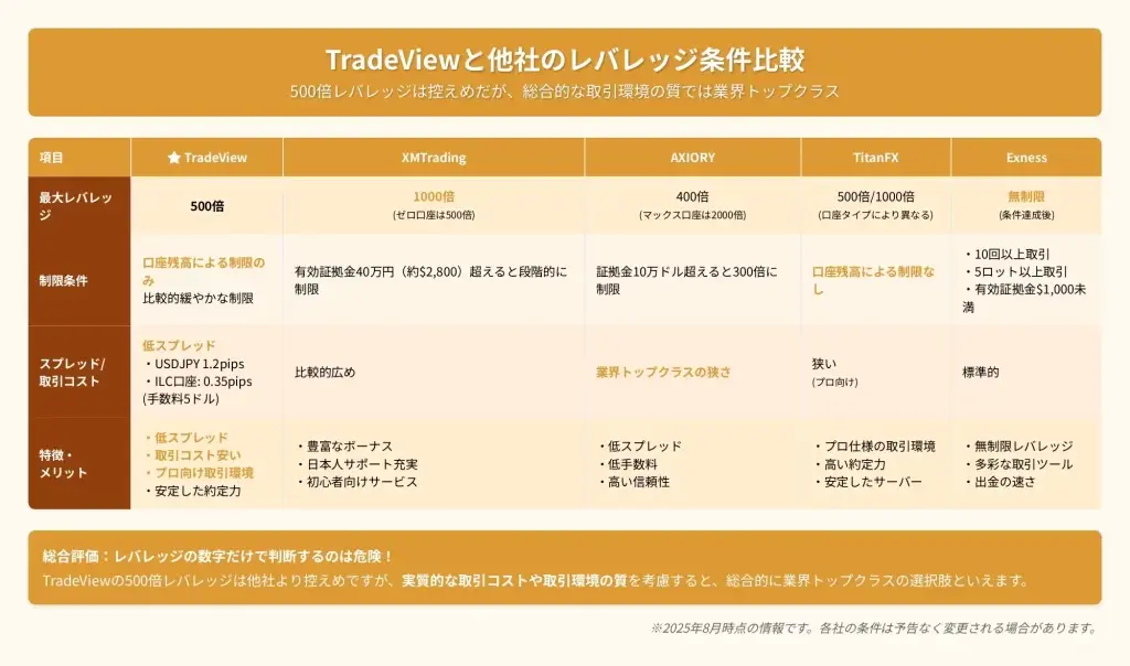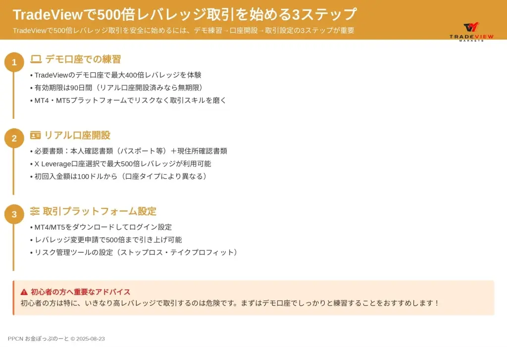 この記事では、TradeViewの全口座タイプ別レバレッジ条件、500倍レバレッジの具体的な計算方法、必要証拠金の算出例、主要海外FX業者との詳細比較表、リスク管理のポイント、デモ口座での体験方法まで、実際の取引で必要な情報を網羅的に解説します。
