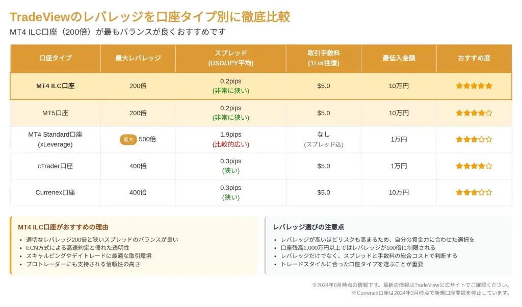 TradeViewのレバレッジを口座タイプ別に徹底比較