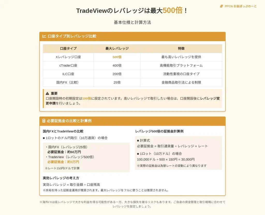 TradeViewのレバレッジは最大500倍!基本仕様と計算方法