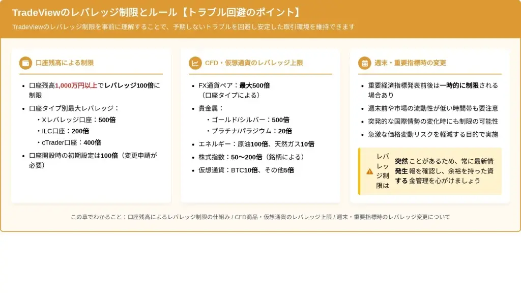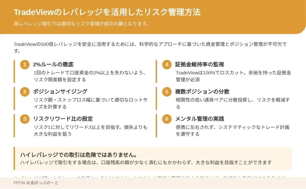 この記事を読めば、TradeViewのレバレッジを完全に理解し、あなたの取引スタイルと資金規模に最適な口座選択ができるようになり、安全かつ効率的な取引を始められるようになります。