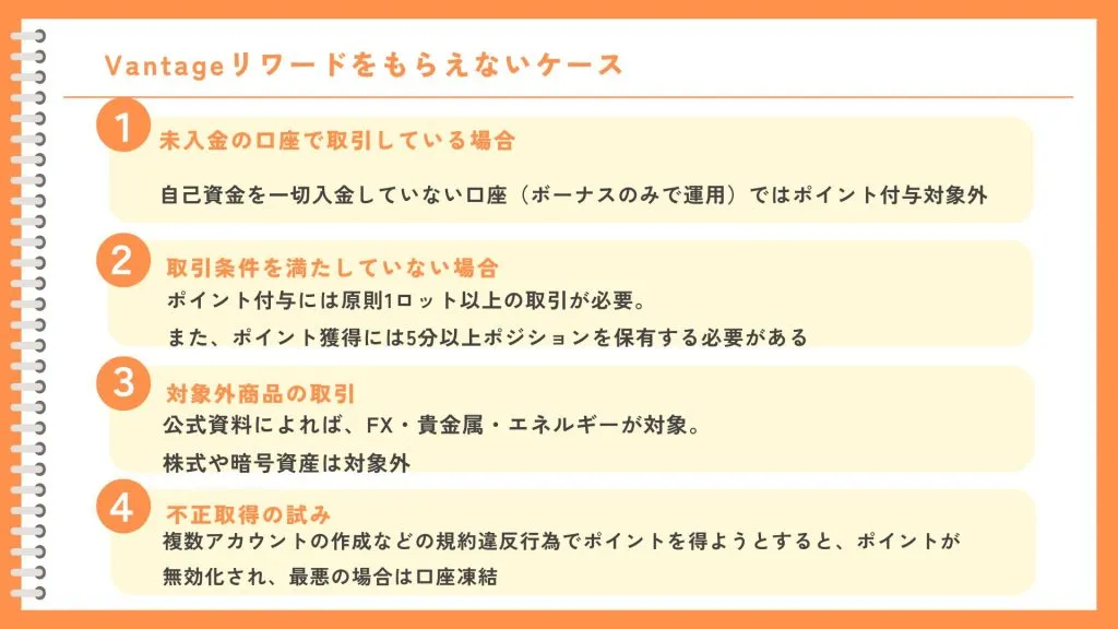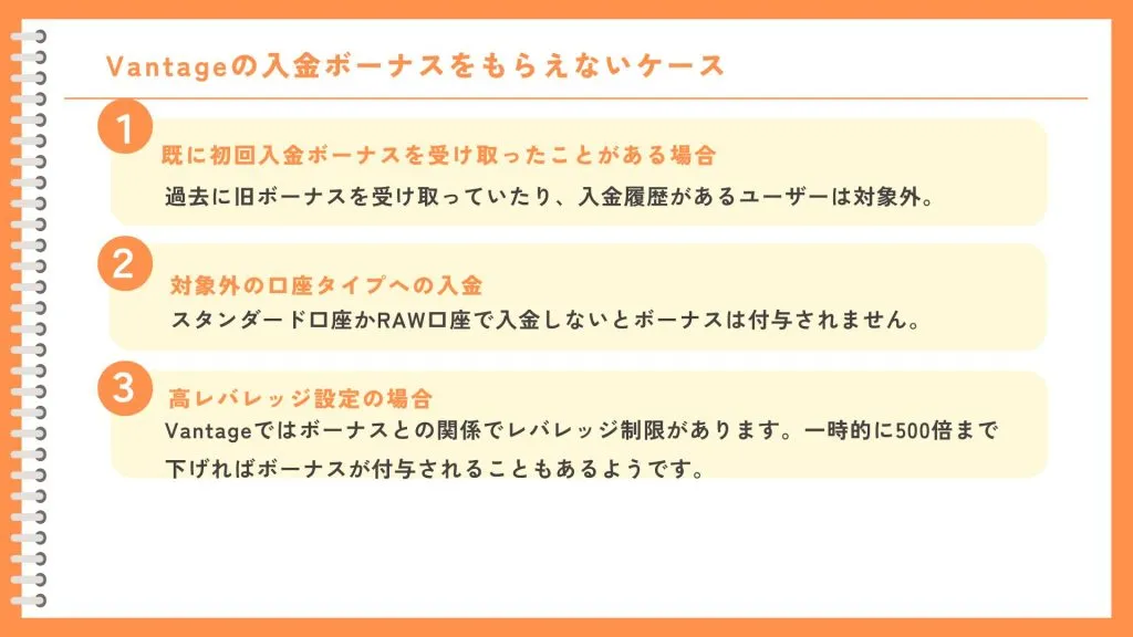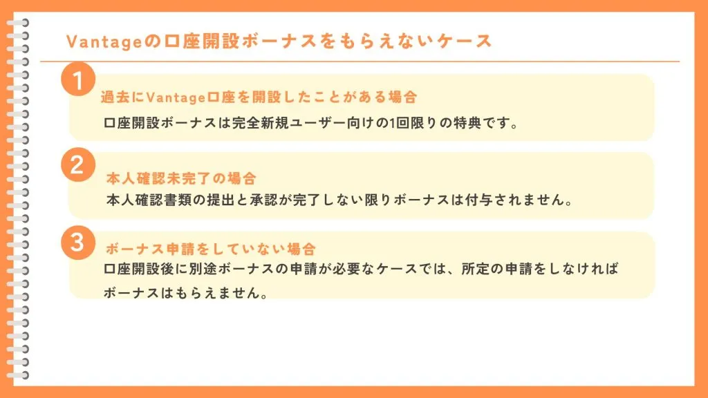 Vantageに限らず、海外業者のボーナスには魅力とともにリスクや留意事項も存在します。