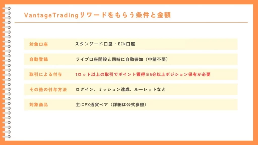 Vantage Tradingリワード(ロイヤリティプログラム)をもらう条件と金額