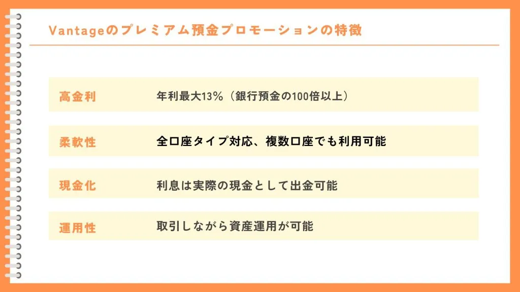Vantageのプレミアム預金プロモーションをもらう条件と金額