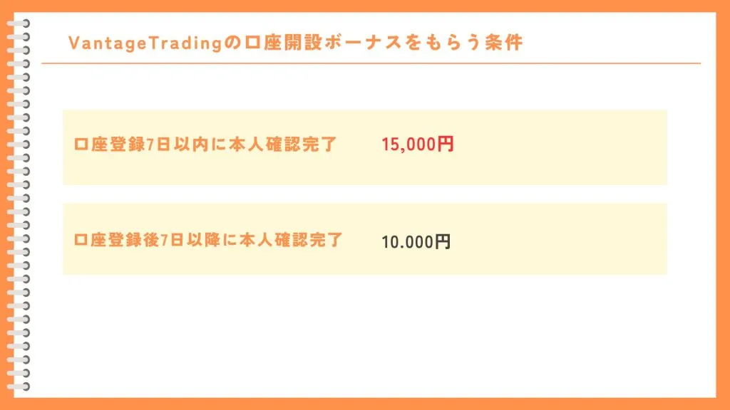 ここからは、Vantageで過去に実施されていたボーナスを紹介するので、今後のボーナス情報の参考にしてください。