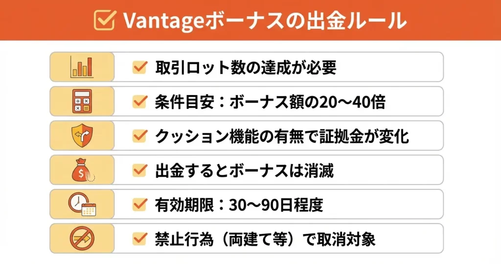 Vantageボーナスの出金条件と利用制限
