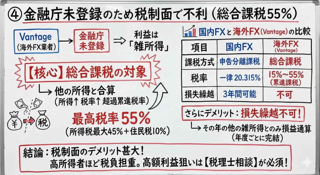 Vantageは複数の海外金融当局のライセンスを保有していますが、日本の金融商品取引法(e-Gov法令検索)に基づく登録はしていません。