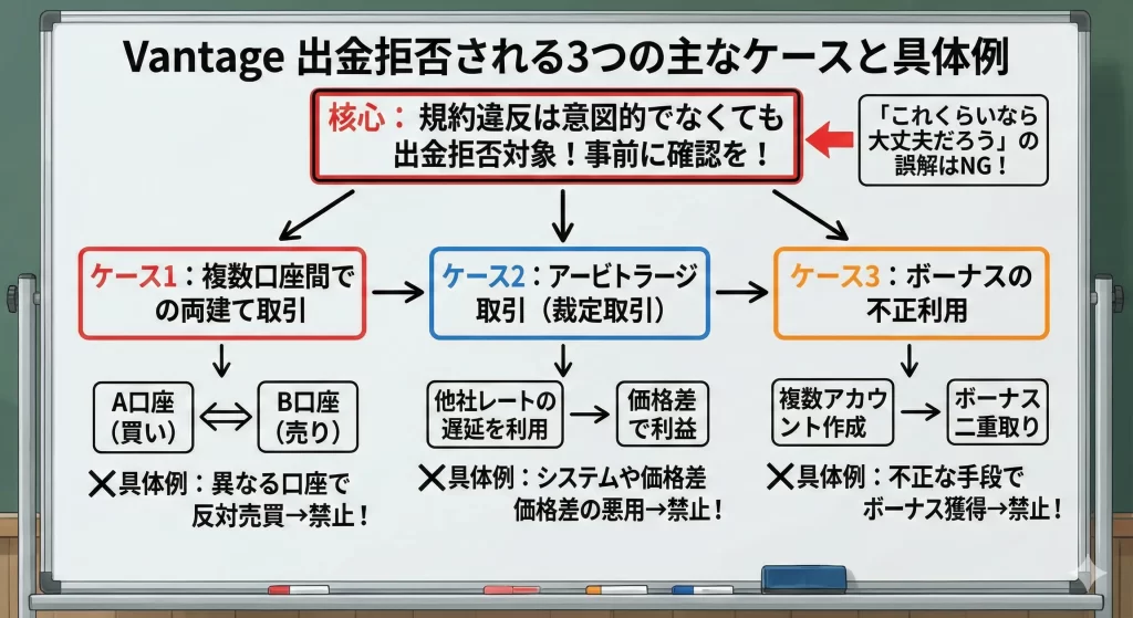また、ボーナス規約も複雑で、出金時に利益が没収されるケースもあります。