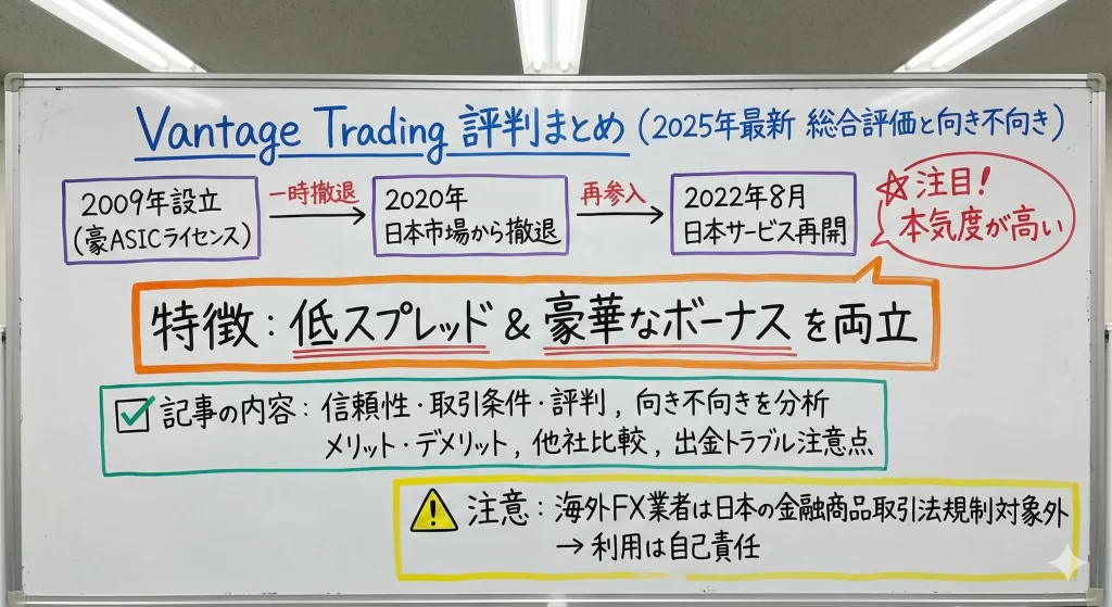 本記事では、Vantageの信頼性・取引条件・実際の評判を多角的に分析し、どのようなトレーダーに適しているのかを明らかにします。