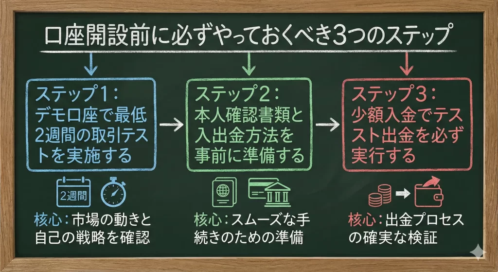 口座開設前に必ずやっておくべき3つのステップ