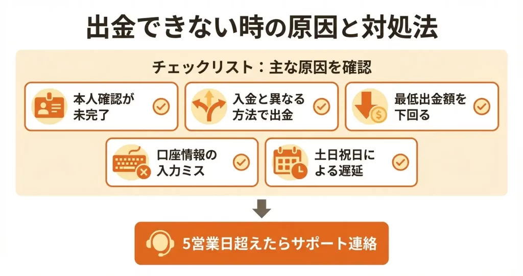 出金手続きを行う前に、サポートへ確認しておくと安心です。