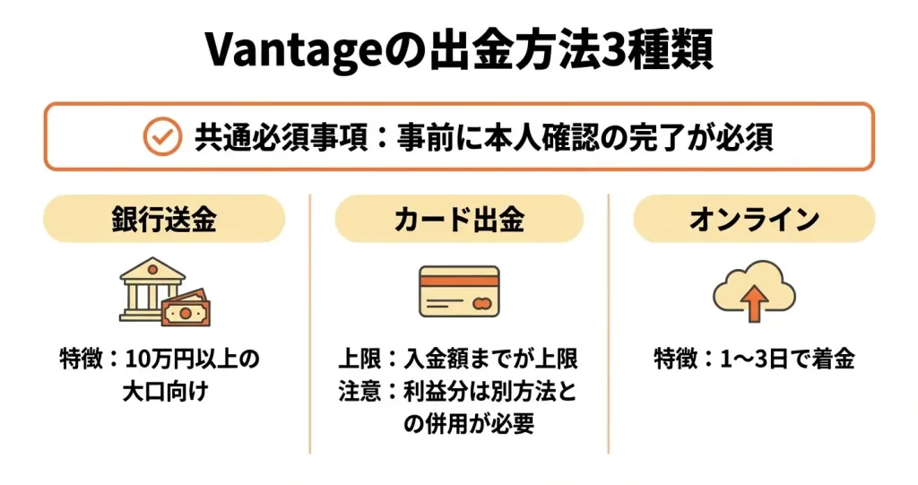 Vantageの出金方法は3種類|あなたに合った方法を選ぼう