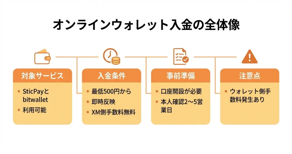 オンラインウォレットにはbitwalletやSTICPAYなどがあり、即時反映が特徴です。