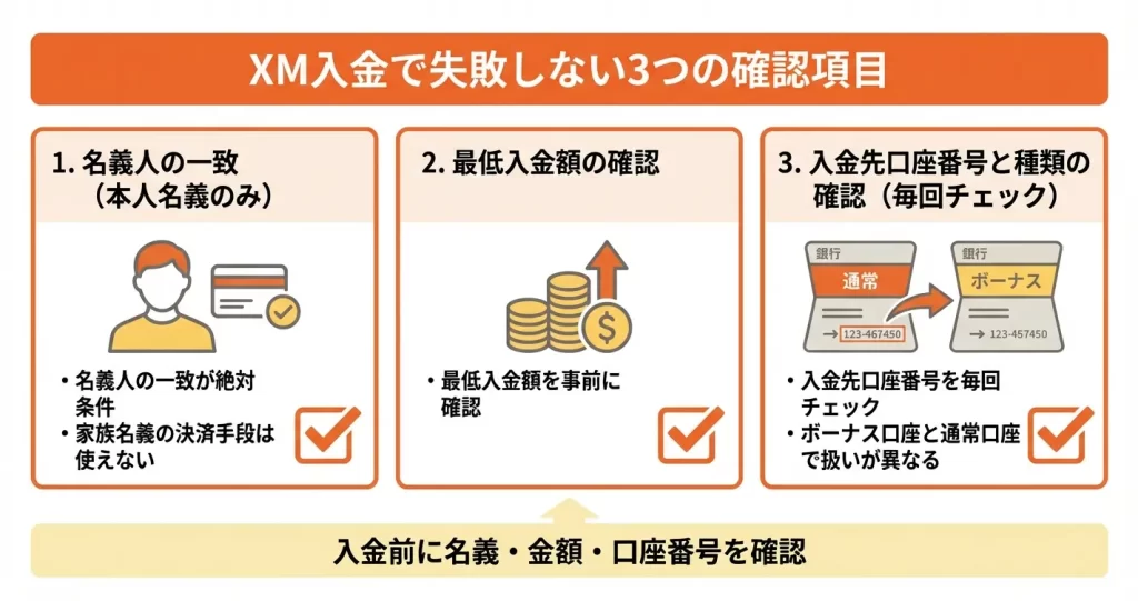 XMTradingへの入金は、口座開設時に登録した名義と完全に一致している必要があります。