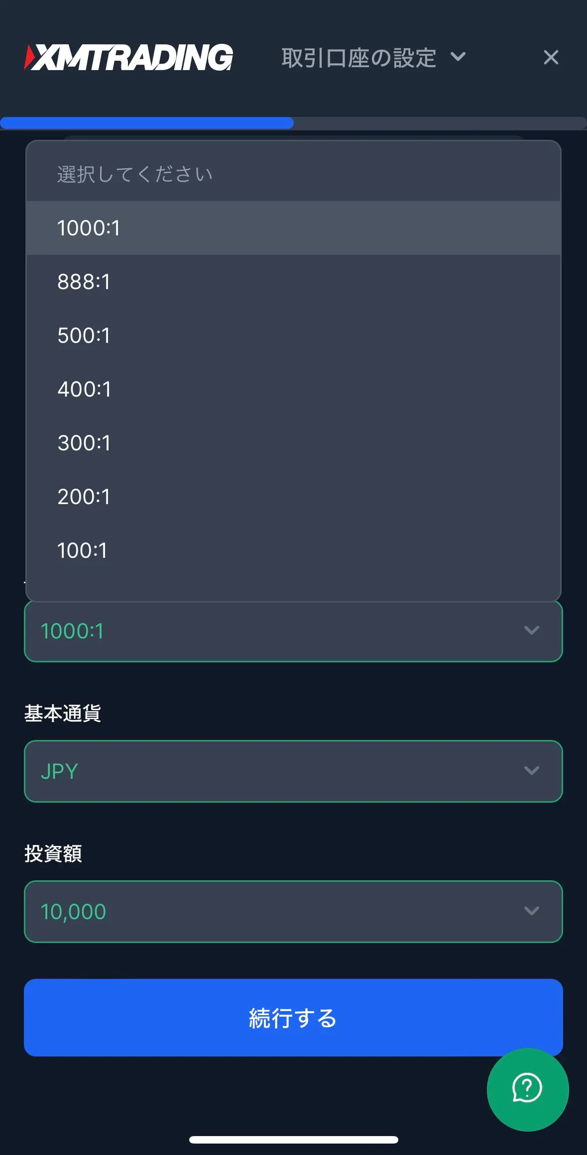 XMTradingは、口座開設するときにレバレッジを設定することができます。