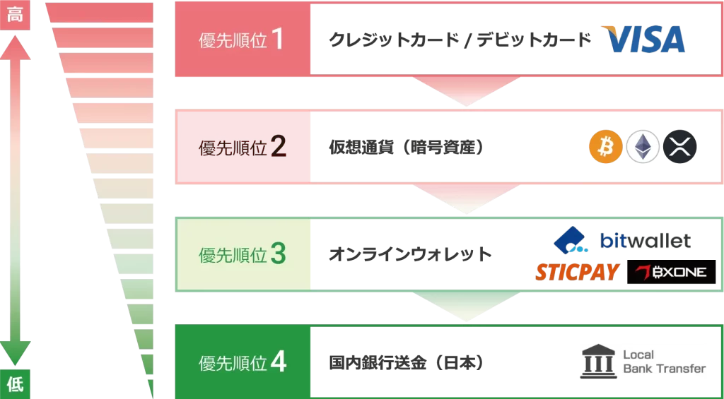 - 入金方法に応じた出金の優先順位がある